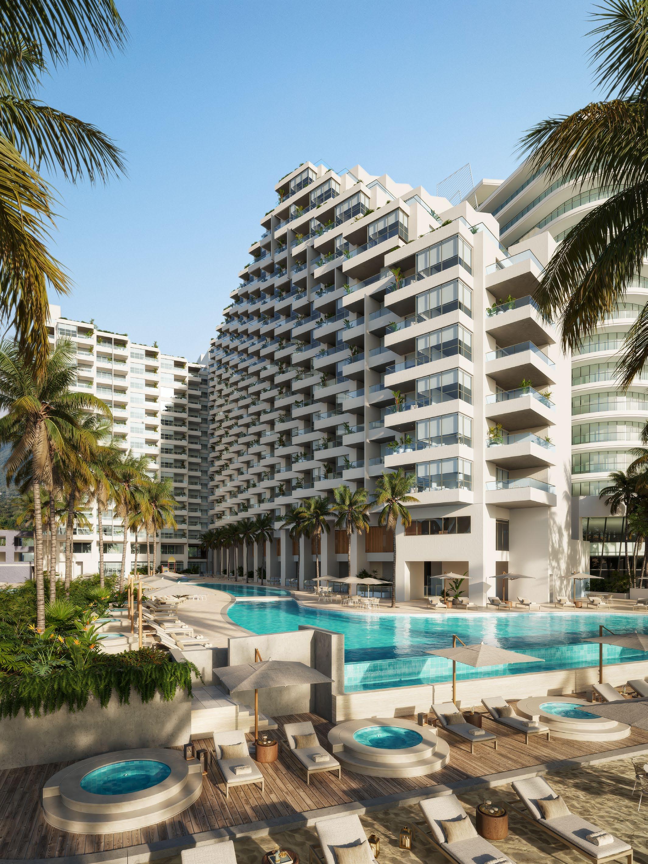 - Zona piscina (+1000m 2 con borde infinito) y vista a la playa.